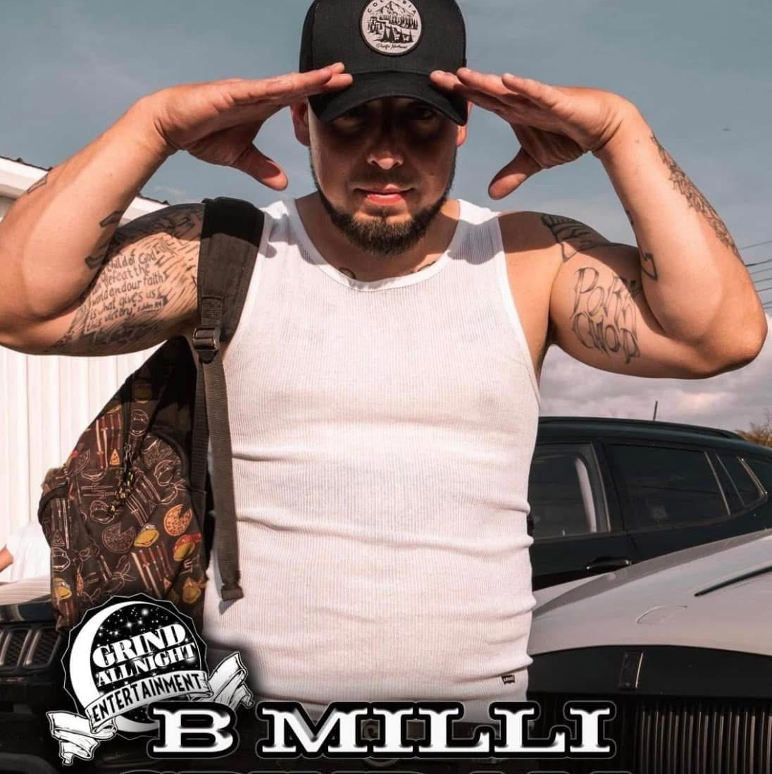 B Milli is a white rapper hailing from East Tennessee, bringing raw intensity, unapologetic bars, and a Southern edge to the hip-hop and country-rap scenes. With a commanding presence — muscular build, signature hat, and bald head underneath — B Milli stands out visually as much as he does lyrically.